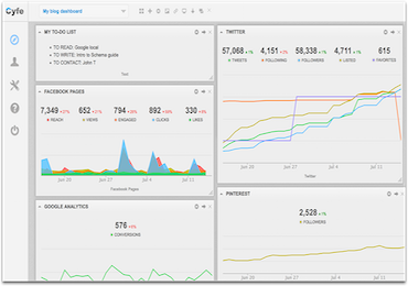 Cyfe can be used for lots of purposes. I use it to get a bird’s eye view of my stats. You can create a single dashboard to see all types of traffic and social media reports you can imagine: from Google Analytics numbers to daily progress of your social media following growth.