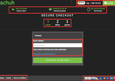 I often refer to Schuh when writing about ecommerce, but that’s because it’s very good indeed. The team understand the importance of checkout usability and test and improve regularly.