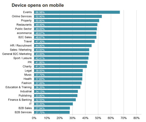 12. Events (66,9% of opens), Online Services (52,9%) and Property (50,8%) sectors show the highest levels of mobile email consumption. –