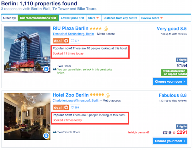 This is useful in one sense, as it tells the user that they need to book soon to secure it, and this can nudge them into making a faster decision.