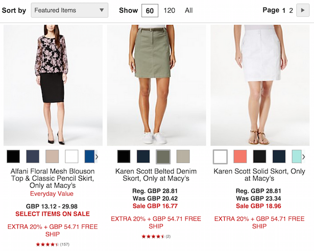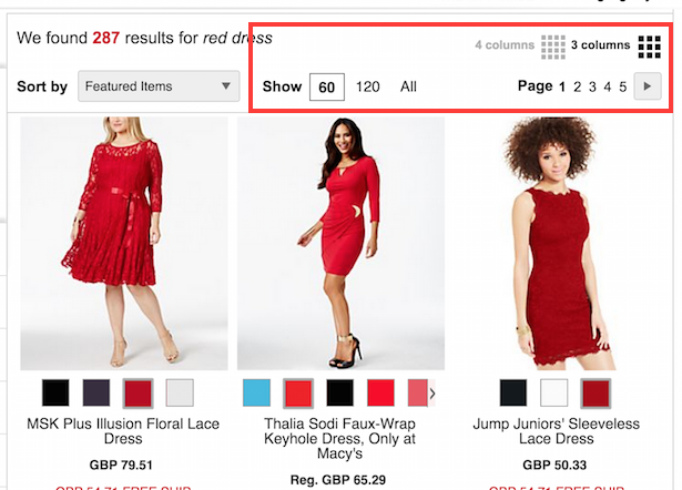 Macy’s allows searchers to change the colour of products shown in search results: