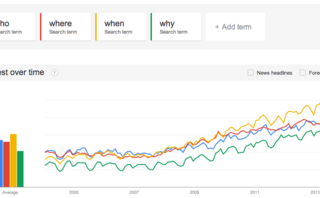 You may notice that I left two key questions out of the trends: “how” and “what”. When adding these into the mix, their popularity and growth is by far dominant, especially for “how”.