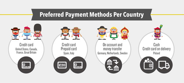 19. Great Britain, the US, Canada and France spend online using predominantly credit cards.