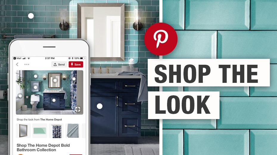 Home Depot will have more than 100,000 shoppable products on Pinterest’s Shop the Look feature, which combines visual search and people’s recommendations. Tapping a circle under a pin, shoppers can see similar items available in the store, including vanities, faucets, lighting and décor.