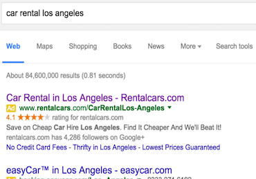 For example, this PPC ad uses the phrase “car rental in Los Angeles.”