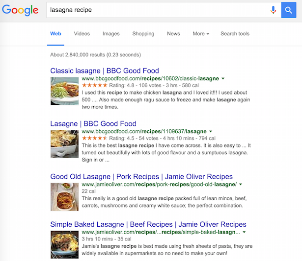So here, Google decides which results are most helpful if you’re looking for a lasagna recipe:
