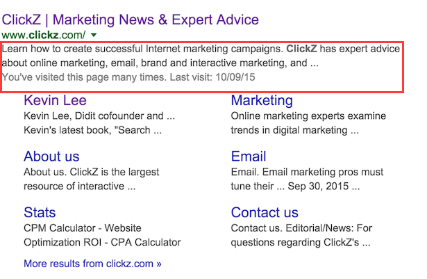 For example, here’s the meta description for ClickZ: