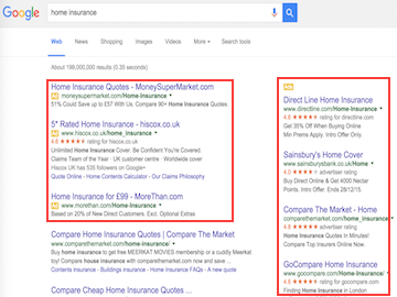 Here, a competitive term like home insurance attracts a lot of PPC spend: