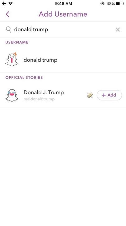 Celebrities, however, can often be found just by entering their name. For example, Donald Trump’s username is ‘realdonaldtrump’, but he can be added simply by typing ‘Donald Trump’.