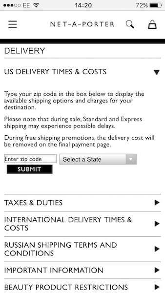 It’s a masterclass in simple, clear messaging on mobile, while keeping the customer in focus, as well as offering premium delivery options that won’t make you balk at the cost.