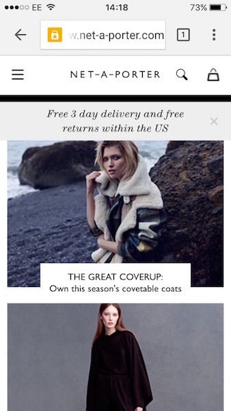 The luxury fashion retailer is one of the few that mentions on the homepage its free delivery option.