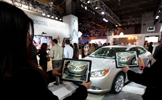 Store visitors can learn about the vehicle through tablet computers and videos accessed around the LaCrosse at six points. The video content is available through Aurasma, a platform technology that uses real-world visual cues to deliver content to mobile devices. Buick has ten iPads for the eAssist tour. According to Don Peasley, VP and account director at Leo Burnett Detroit, which created the display, notes Buick is trying to make itself more appealing to a younger male demographic. Hence the videos are narrated by a young woman who coos at viewers and drops words like “sexy.”