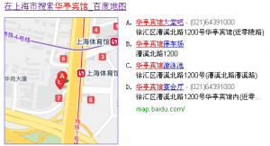 Baidu’s maps show up hotel name searches and many other location name searches. Even the look-and-feel of Baidu maps is almost identical to that of Google Maps (prior to Google Places integration).