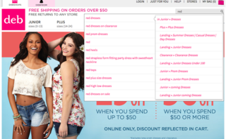 Here’s a screenshot of autosuggest in action for the retailer Deb Shops, which would be using the predictive search technology: