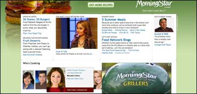 That said, the message of summer savings comes across loud and clear, as it does with another brand eager to highlight its value as a product for the season. Morningstar Farms, known for its meatless burgers, has partnered with Food Network to launch a home page skin and rich media campaign that offers recipes coupled with in-banner coupons, all wrapped up in the apropos seasonal message, “Great ways to go meatless on the grill.”
