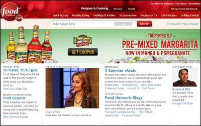 The prize for best social media strategy, however, goes to Jose Cuervo, which is also advertising on FoodNetwork.com to promote its pre-mixed margarita with additional savings. Its home page skin and adjacent rich media banner also offer a coupon, but link directly to the brand’s Facebook page before sending users to parent site Diageo (in a new browser window, of course) to print the coupon. This intermediary step increases awareness of Jose Cuervo’s social media presence and helps to boost “Likes.”