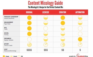 While this may sound like a new concept, major publishers have been practicing content mixology for years. The largest newspapers in the world have historically licensed content from wire services, curated articles from select sources, and added automated content feeds to their websites to supplement local coverage from their own editorial teams. Modern technology helps marketers and publishers of any size use technology to ensure relevant and timely content for a unique content mix.