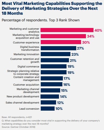 graph showing most vital marketing capabilities supporting delivery of strategies over next 18 months