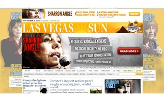 Sharron Angle is “reckless,” “radical,” and “extreme,” according to an eye-catching homepage takeover on LasVegasSun.com. The anti-Angle takeover ad is the principal online effort today from pro-Democrat group Patriot Majority PAC, according to the group’s President Craig Varoga.