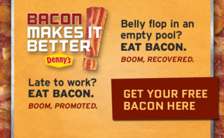For one, Denny’s has partnered with humor website Fail Blog, which posts funny fail pictures and videos, to create branded videos. According to Denny’s, the partnership highlights the curing powers of bacon in “major fail” scenarios, like falling off a treadmill or into a dumpster. Each video ends with sizzling bacon and the message, “Bacon Makes It Better.”