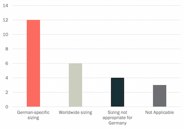 For example, sizes can vary between countries, so size guides need to reflect this. However, just 12 of the 25 were using German-specific sizing.