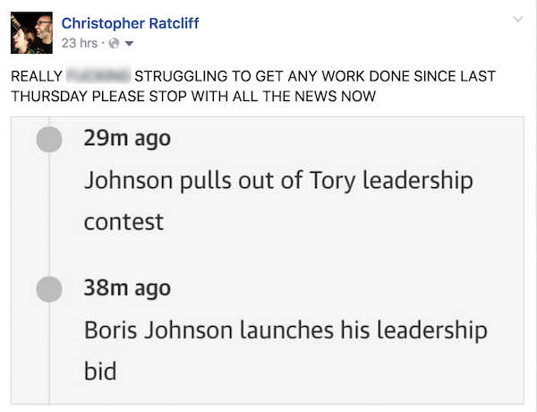 It’s been a – (I can’t even settle on an adjective so here’s five of them) – tumultuous, horrifying, unpredictable, troubling and baffling week for UK politics. At times it’s been difficult to keep up, but for the most part it’s been even more difficult to tear myself away from the internet, as I stare wide-eyed and open-mouthed in shock.