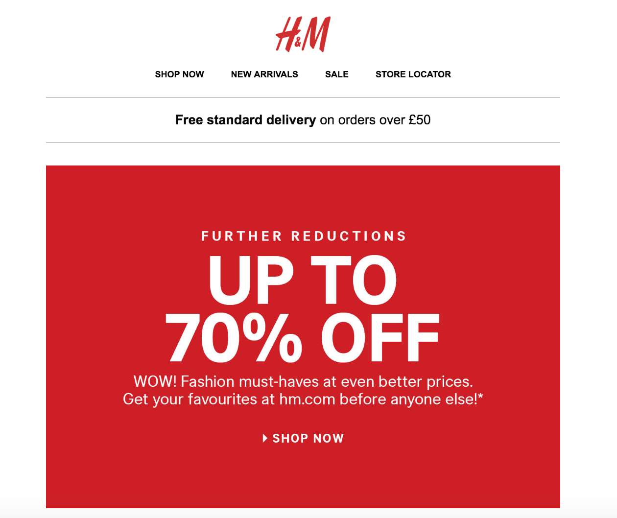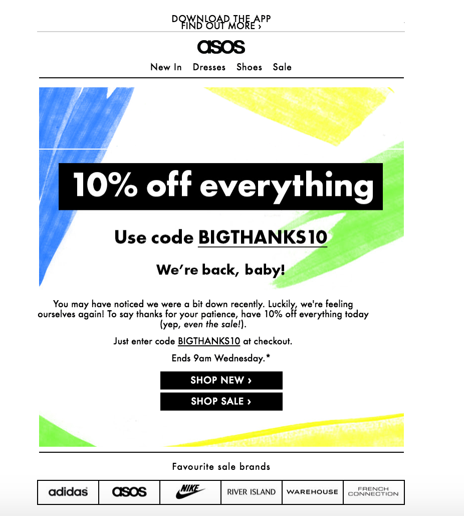 A discount code, like the one ASOS provided, may be the right reward for loyal customers, especially if it’s an exclusive deal for the email subscribers. This way they will also keep an eye on future mails, which increases the chances of future effective email campaigns.