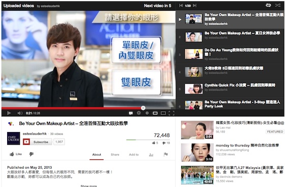 Estee Lauder Hong Kong is taking an interactive content marketing approach to sell its eye shadow makeup on YouTube. Its digital marketing manager has also given the thumbs up to Google’s TrueView video ad format.