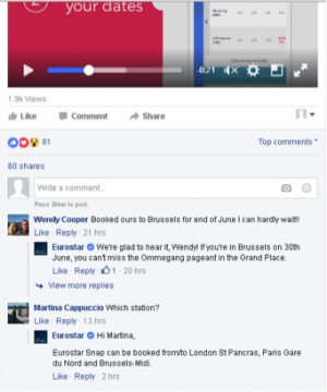 Two social media platforms, Weibo and WeChat, are dedicated to Eurostar’s Chinese customers, for whom Facebook and Twitter are less commonly used. This makes sense as many Eurostar customers live in China and use the train services when travelling in Europe.
