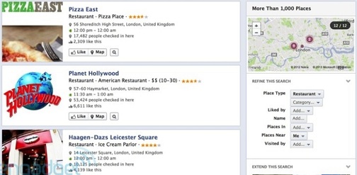 Facebook Graph Search also includes the businesses that have been added as a “place” by someone. Still, it is hoped that small and medium-scale businesses quickly establish their online presence on Facebook so that people start liking their pages and checking in at their locations as a projection of their opinion and as referrals.