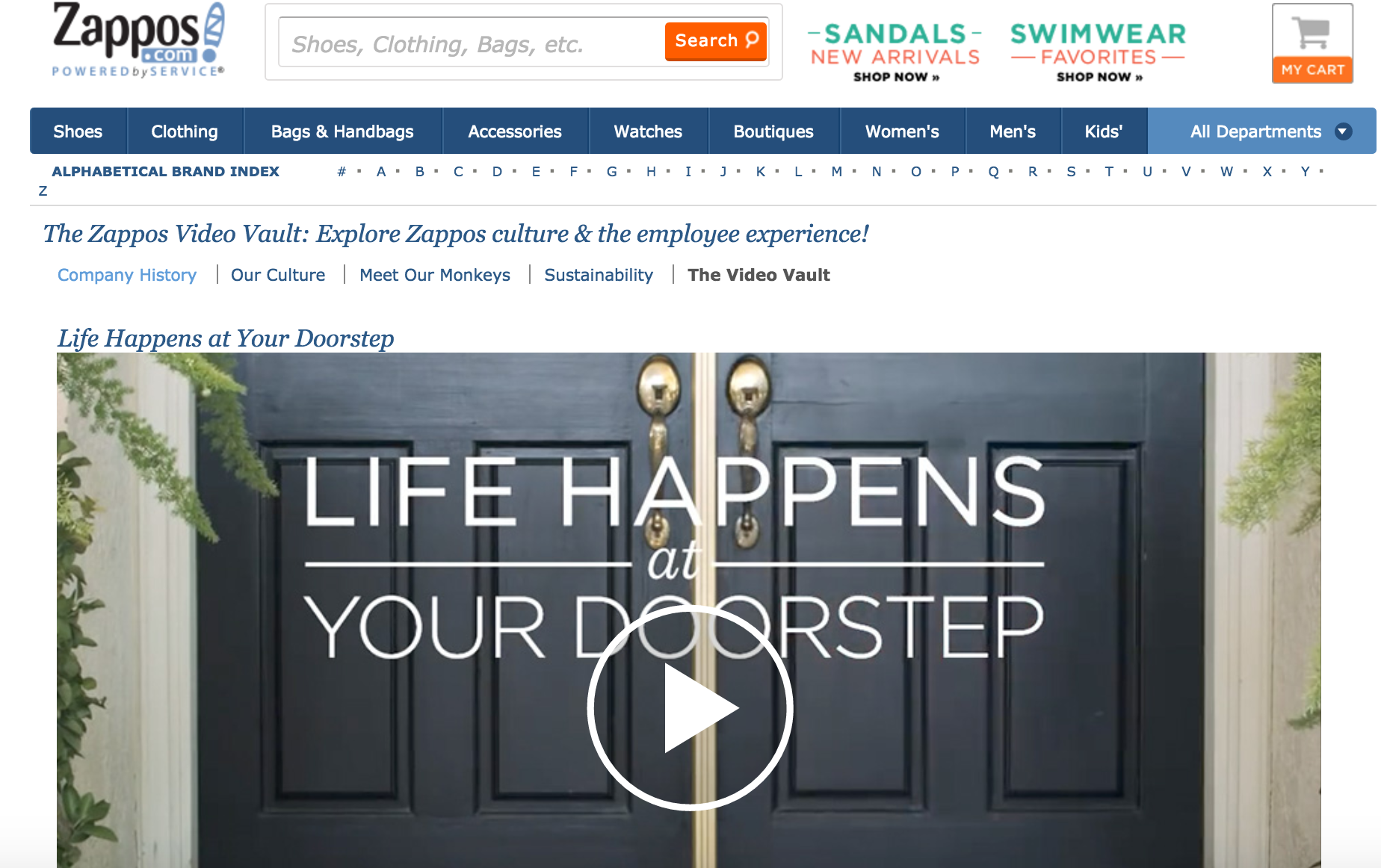 Video content can be found in the “About Us” section of a page, as a way to introduce the company to the customers, which has proven to be very successful for Zappos and its famous company culture.