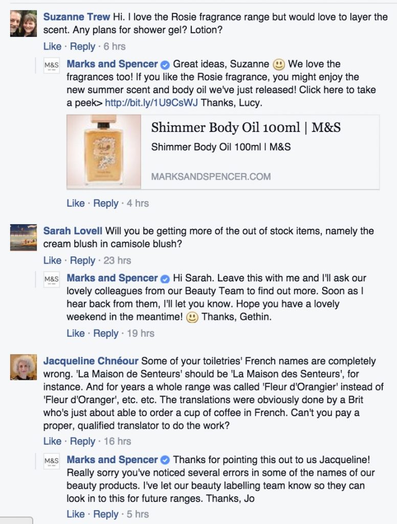Savvy brands have also found ways to turn customer feedback on social media into an opportunity to upsell products. Take Marks and Spencer, whose social customer service representatives respond to customer questions and criticism by recommending them products that they might like, or making sure that the feedback they have is passed on to the relevant internal teams.