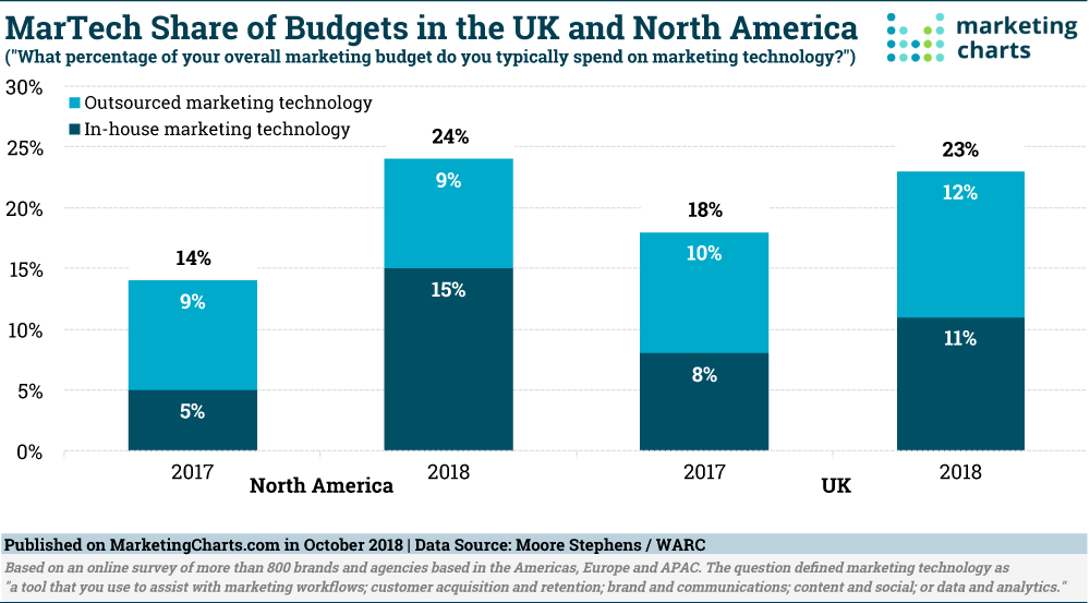 There is an increased investment in marketing technology, which is not expected to slow down in 2019. Martech budgets have increased by 44% in 2018 and the current market size for martech is estimated to be of $99.9 billion.