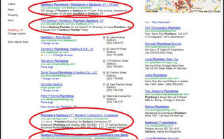 Just for comparison I ran the same queries on Bing. Below, the query “Plumbers Danbury” is displayed.