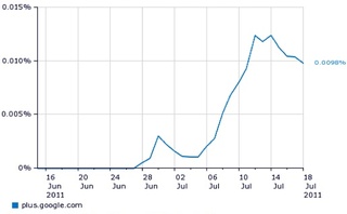 The data represents the first third-party assessment of the platform’s growth, based on data collected by Experian Hitwise from June 28 through July 18. Estimates of the site’s registered user base have also been offered by Paul Allen, founder of Ancestry.com. Allen believes the number of Google+ members reached 18 million on Monday.
