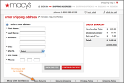 This sounds like a no-brainer, but we’re often surprised by those who fail to do this. Of course, almost all sites have a return/exchange policy, and many of them do actually link to it. Macy’s is a great example. One could indeed argue that the “easy returns” link is near the CTA. But let’s not confuse near with visible: