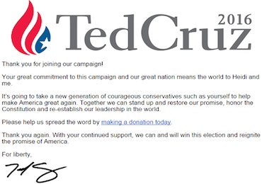 I’m not American, so I haven’t signed up to any politician’s email lists. But, I am Canadian (no one’s perfect) so, during our general election in 2015, I signed up to emails from all the major political parties.