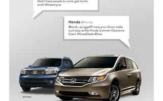 In addition to the one-day Twitter event, Honda says the Summer Clearance promo is supported by television, print, digital, and radio advertising.