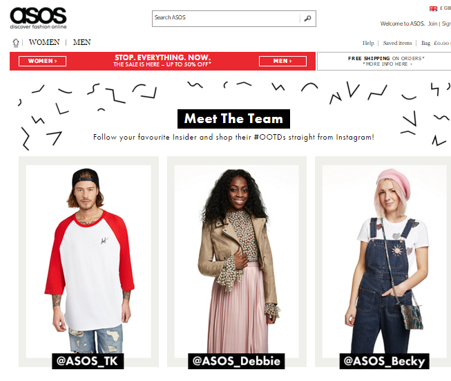 ASOS has created a special section on its site named “ASOS Insiders” and it features popular fashion influencers and models who promote the brand’s products, both at the site, but also through their social accounts.