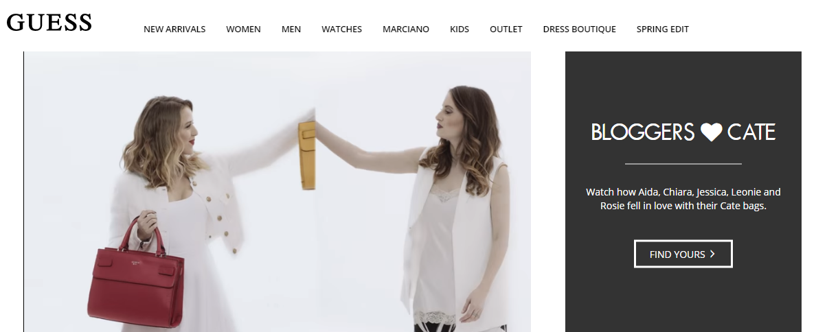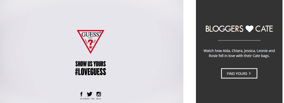 Guess has collaborated with fashion bloggers to showcase its products, in order to create new content, boost its brand awareness, but also to encourage users to post their own content with the use of the hashtag #loveguess.