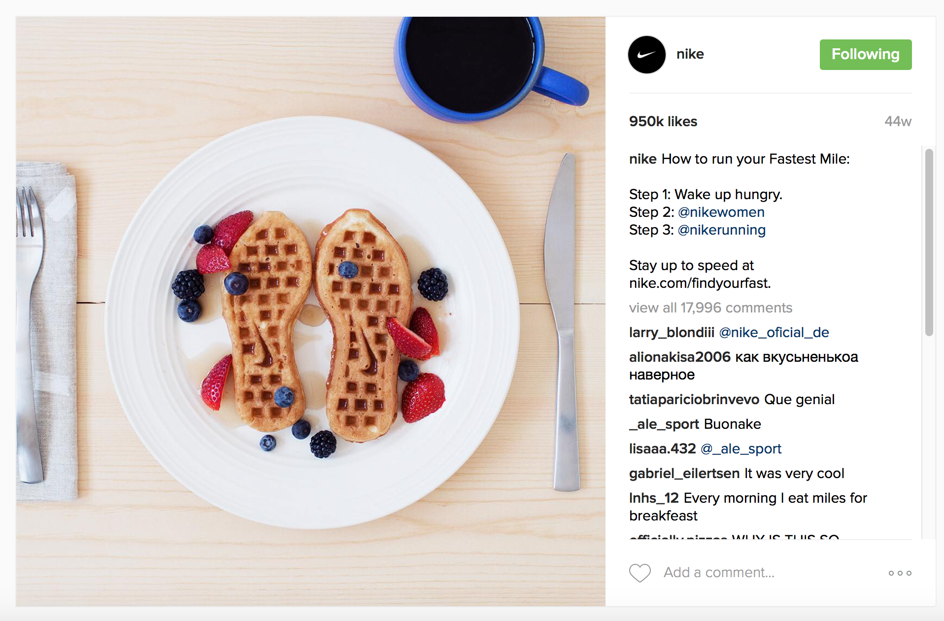 It’s impressive to note that an average Instagram photo for Nike counts 469,842 interactions, while a post like the one below led to 950k likes.