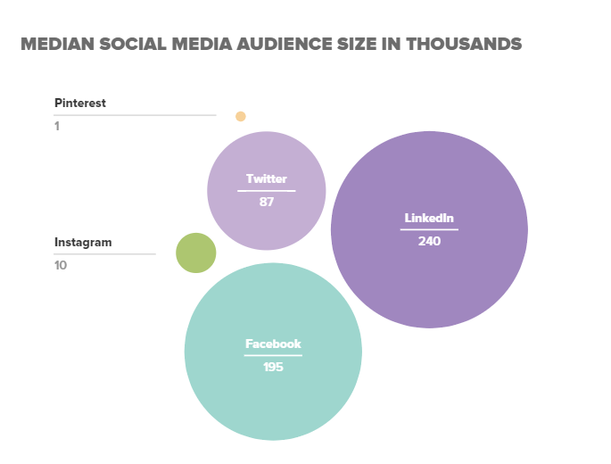 It’s always nice to have some figures behind these things, so let’s take a quick look at the audience figures. According to this report, the top 37 B2B financial service groups have a median following of 240,000 on Linkedin, compared to just 1,000 followers on Pinterest.