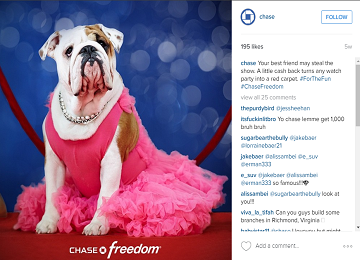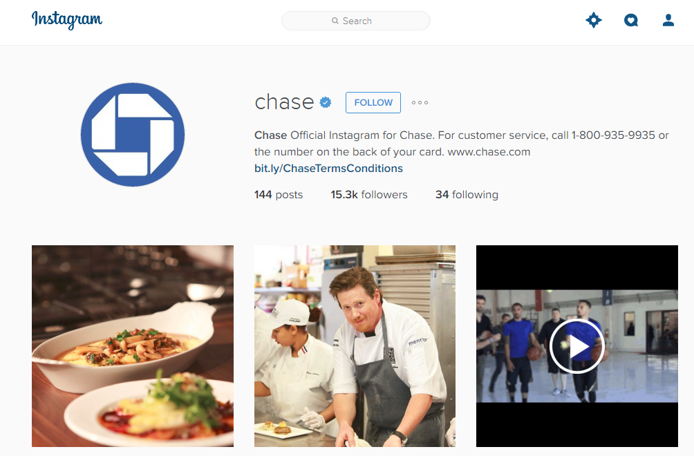 JPM is lagging on social, without a brand account on any of the major visual platforms (I checked out Pinterest, where people are mainly concerned with sharing historical images from the firm’s… storied history), but does maintain an Instagram account for Chase Bank so let’s take a look there.