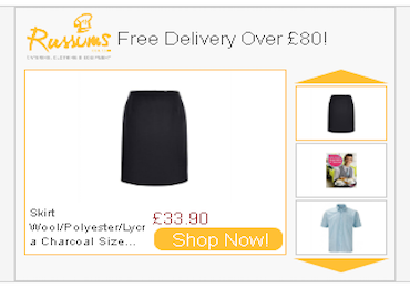 This is known as ‘dynamic remarketing’ and in this example from catering equipment specialists Russums, the exact products I viewed on the website are included in the advert in rotation, with a ‘shop now’ button to encourage me to click.