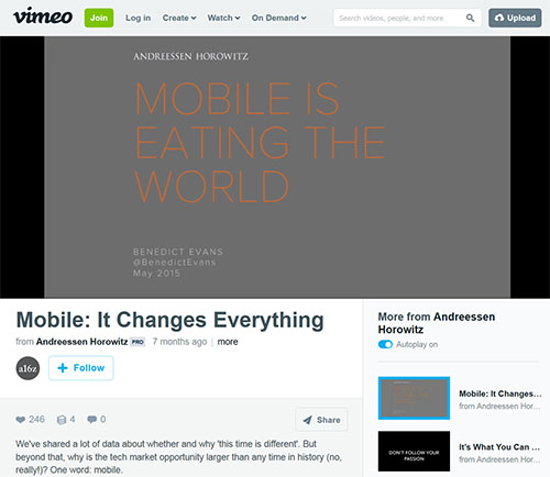 Experts love to claim “Mobile changes everything” – see for example this presentation from Andreessen Horowitz.