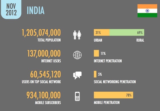 India is home to 930 million mobile subscribers and 60 million social networkers, which include Facebook, Google+, LinkedIn, YouTube, and Tumblr.