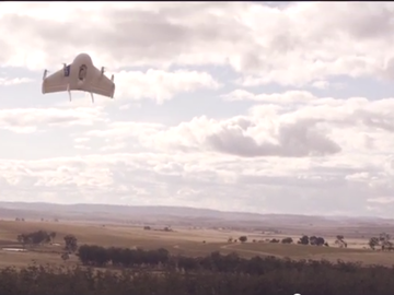 Google have announced that Google X is developing a system of drones to deliver goods: Project Wing. The above video was released to show the scheme in practice, with a farmer from Australia receiving a packet of dog treats carried by one of the drones. The move has been seen as a “technological arms race” with rival Amazon.com, which has also experimented with drones to deliver goods to customers.