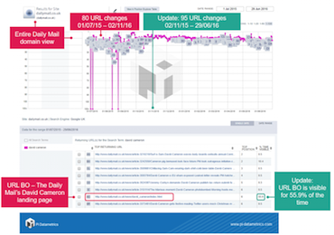 This is the Daily Mail domain view for ‘David Cameron’. As with ‘chelsea news’, performance is inconsistent until November 2015.