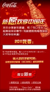 Coca-Cola launched a Chinese New Year greeting campaign earlier this year on different media platforms, including mobile. The campaign was simple, consumers get to make a new year wish on the mobile web campaign site, and Coca-Cola will send their wish out on a virtual coke bottle by MMS.
