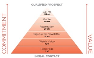 Different visitor’s actions mean different levels of engagement. Therefore, this is what we should do –track their behaviour on the website and assign engagement value (i.e. points) based on the level of engagement. The following is an example for the B2B case: